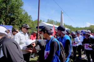 Minasanews.Com.Barru–Acara pelepasan peserta ‘Telusur Jelajah Sejarah’ Napak Tilas Garongkong-Paccekke dipimpin langsung Bupati Barru Suardi Saleh, di monumen Garongkong, Kelurahan Mangempang, Kecamatan Barru, Sabtu pagi (2/3/2024).