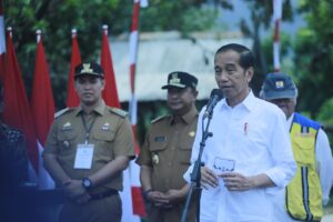 Jokowi dalam sambutannya menyampaikan, di Provinsi Sulsel telah deiberikan anggaran sebesar Rp 668 M untuk tahun 2023 dalam rangka membangun dan memperbaiki 201KM jalan.