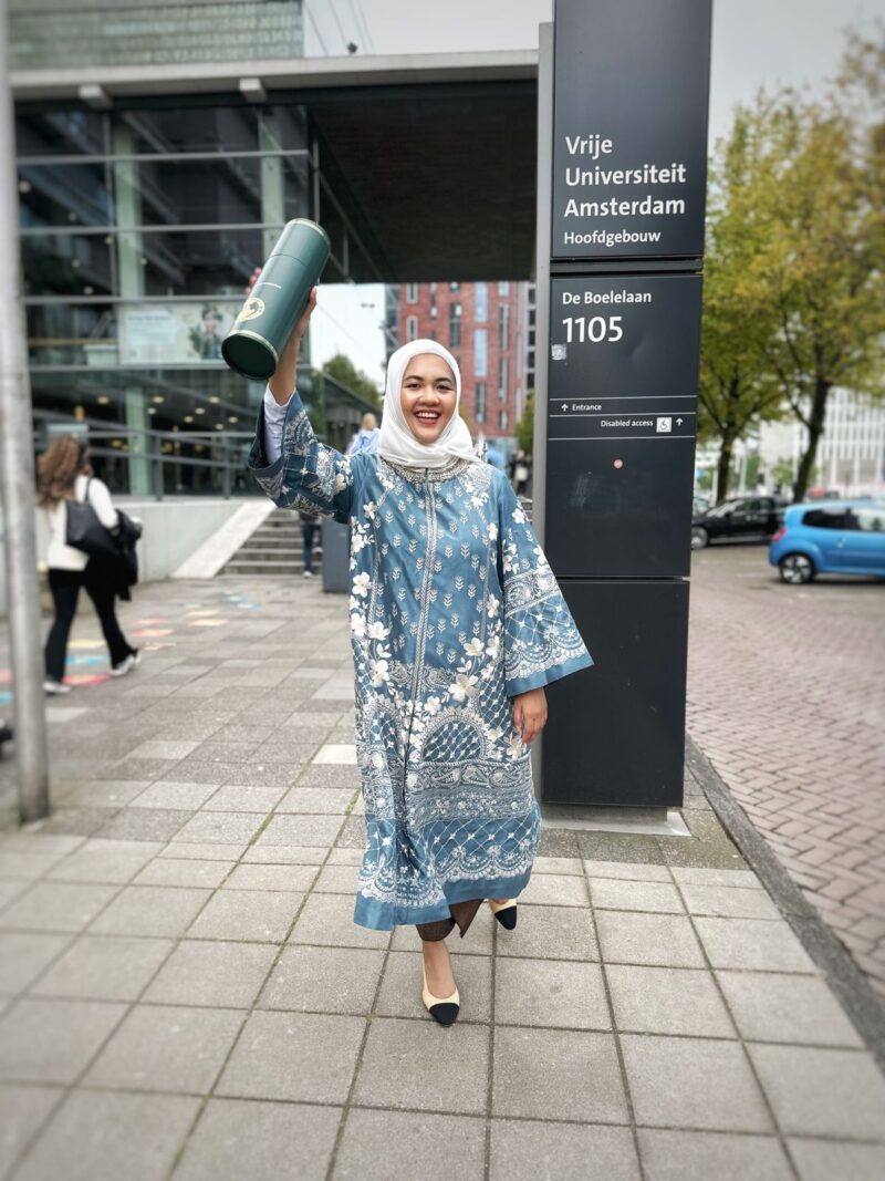 Gelar Doktor bagi Diandra Natsir Kalla sukses diraih setelah mempertahankan disertasinya dihadapan para penguji dan promotor di Auditorium, Vrije Universiteit Amsterdam, Belanda.