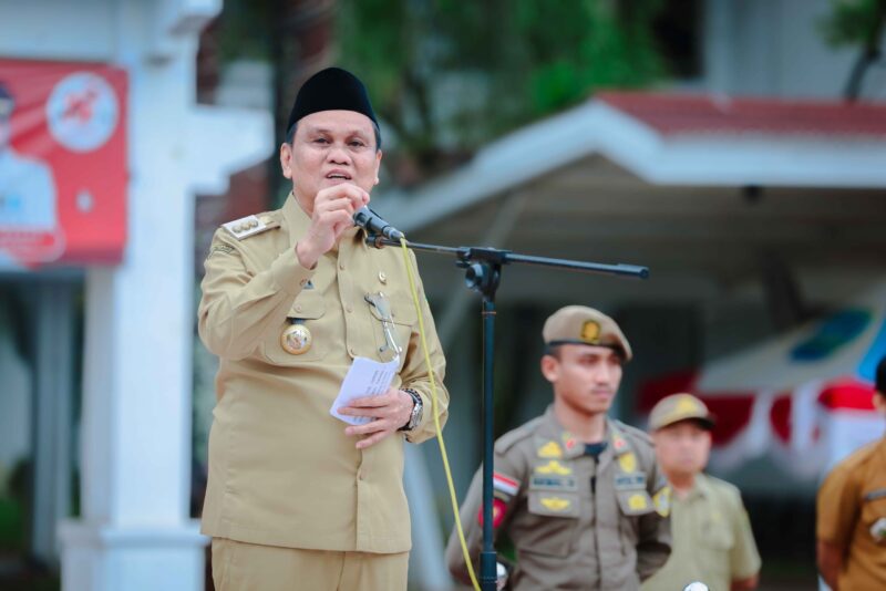 Saat bertindak sebagai pembina apel, Bupati Suardi Saleh mengawali dengan memberikan ucapan semangat tahun baru.