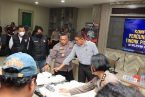 Minasanews.Com.Makassar–Kepala Kepolisian Daerah Sulawesi Selayan Irjen Pol Andi Rian R Djajadi, S.I.K., M.H. memimpin langsung kegiatan Press Release atas keberhasilan Satuan Reserse Narkoba Polres Barru menyita 30 kilogram Sabu-Sabu di dermaga Awerange Kab.Barru, yang di gelar di Lobby, Mapolda Sulsel, Selasa (30/04/2024).