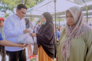 Minasanews.Com.Barru— Bupati Barru Ir. H. Suardi Saleh, M.Si launching Pendistribusian Bahan Pokok Murah untuk Pengendalian Inflasi dalam Rangka Operasi Pasar Tahun Anggaran 2024 di Halaman Kantor Camat Tanete Rilau, Kamis (04/04/2024)
