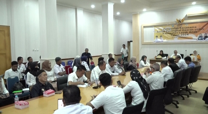 Guna mewujudkan target, digelar rapat penguatan kerjasama lintas perangkat daerah untuk KLA tahun 2024, di ruang rapat Wakil Bupati Kabupaten Pangkep Rabu (24/4/24).