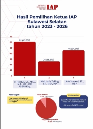 Meskipun sebelumnya dilakukan pemilihan ulang pada 2 Desember 2023, Firdaus kembali terpilih melalui mekanisme e-voting. Firdaus selaku ketua terpilih yang sah kembali menyampaikan terimakasih kepada para senior dan seluruh anggota IAP yang telah memberikan dukungan untuk memimpin IAP Provinsi Sulawesi Selatan Periode 2023-2026.